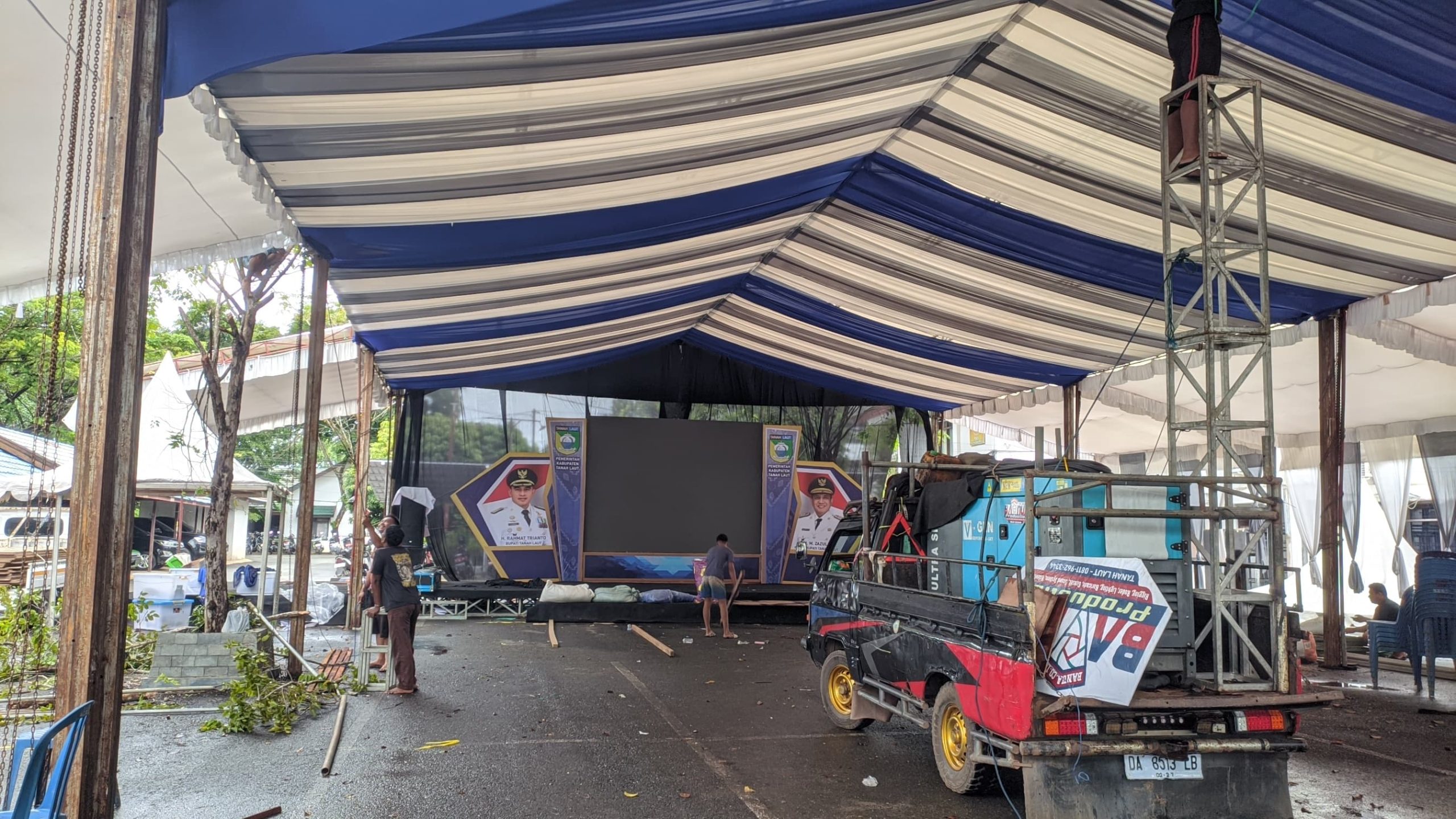 Persiapan demi persiapan dilakukan, tenda acara, sound system, kursi dan meja tamu undangan telah disiapkan guna menunjang pelaksanaan kegiatan tersebut.